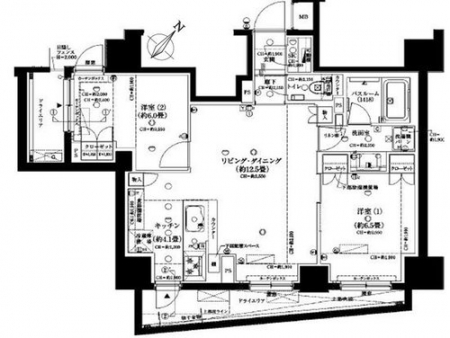 専有面積 | 53.22u | 間取り | 2LDK (LDK12.5/洋室6.5/洋室6) | ||