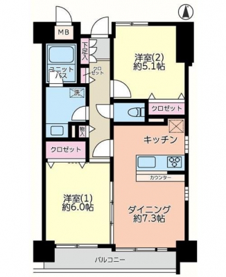 専有面積 | 54.73u | 間取り | 2DK (DK7.3/洋室6/洋室5.1) | ||