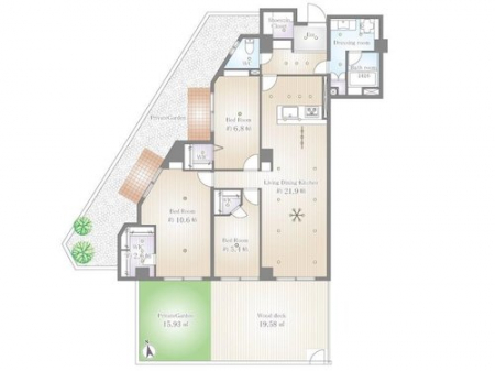 専有面積 | 108.33u | 間取り | 3LDK (LDK21.9/洋室10.5/洋室6.8/洋室5.4) | ||