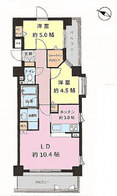 専有面積 54.73u 間取り 2LDK (LD10.4/洋室5/洋室4.5)