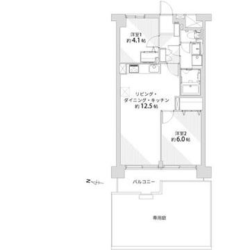 専有面積 | 51.84u | 間取り | 2LDK (LDK12.5/洋室6/洋室4.1) | ||