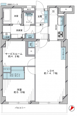 専有面積 | 61.98u | 間取り | 1SLDK (LDK14.7/洋室5.5/S4.2) | ||