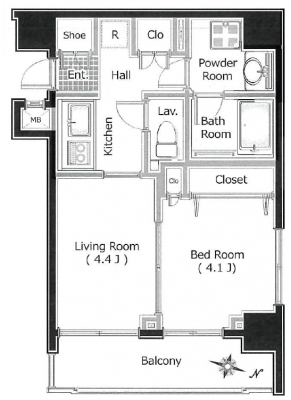 専有面積 | 30.01u | 間取り | 1LK (L4.4/洋室4.1) | ||