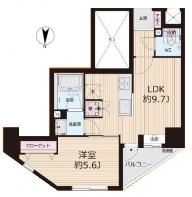 専有面積 | 38.71u | 間取り | 1LDK (LDK9.7/洋室5.6) | ||