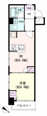 専有面積 | 27.09u | 間取り | 1DK (DK6.8/洋室4.4) | ||