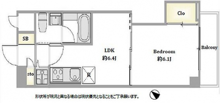 専有面積 31.19u 間取り 1LDK (LDK6.4/洋室6.1)