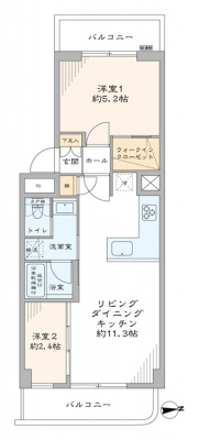 専有面積 | 40.92u | 間取り | 2LDK (LDK11.3/洋室5.2/洋室2.4) | ||