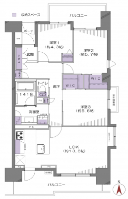 専有面積 | 72.32u | 間取り | 3LDK (LDK13.8/洋室5.7/洋室5.6/洋室4.3) | ||