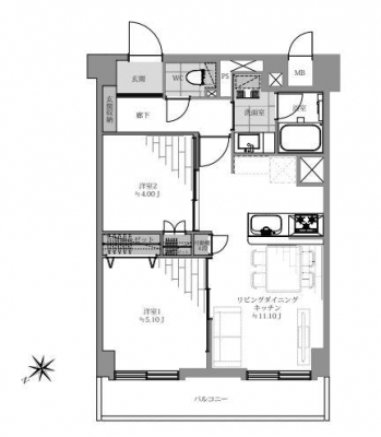 専有面積 | 50.02u | 間取り | 2LDK (LDK11.1/洋室5.1/洋室4) | ||