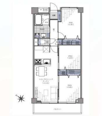 専有面積 | 58.86u | 間取り | 3LDK (LDK11.1/洋室5.3/洋室5/洋室4.5) | ||
