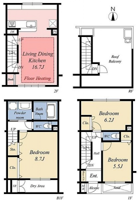 専有面積 | 96.82u | 間取り | 3LDK (LDK16.7/洋室8.7/洋室6.2/洋室5.5) | ||