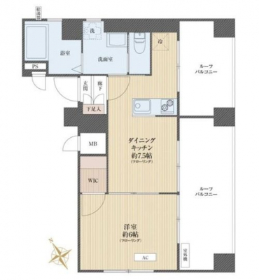 専有面積 | 36.4u | 間取り | 1DK (DK7.5/洋室6) | ||