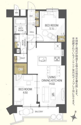 専有面積 | 52.82u | 間取り | 2LDK (LDK14/洋室5.1/洋室4.9) | ||